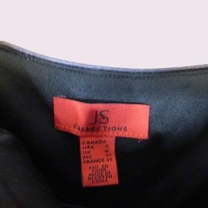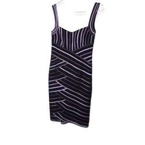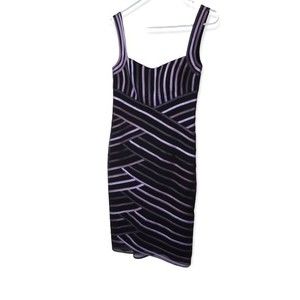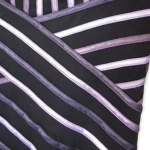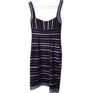 This is a fun JS Collections black sheer stretch dress with purple satin ribbon.
