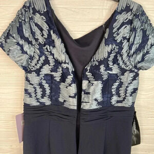 JS Collections Blue Ribbon and Lace Crepe Midi Dress V Back Short Sleeve 14