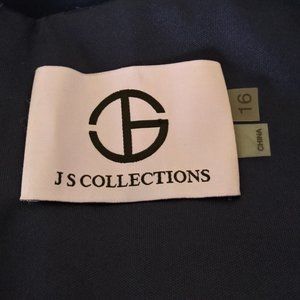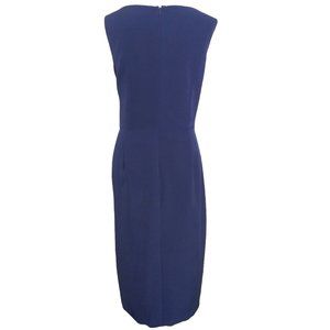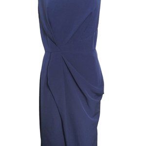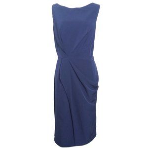 JS Collections Blue Sheath Dress Size 16 Draped Faux Wrap Sleeveless Fully Lined