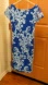 JS Collections Blue & White Embroidered Sheath Midi Dress- Size 4