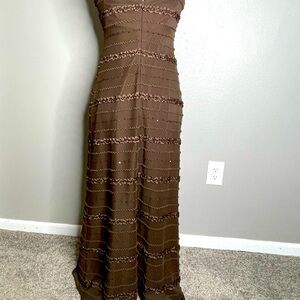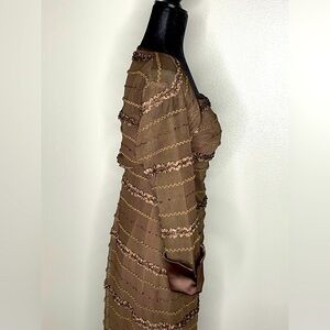 JS Collections Brown Sequin Dress Petite with 3/4 Sleeve Sheer Bolero | Size 8P