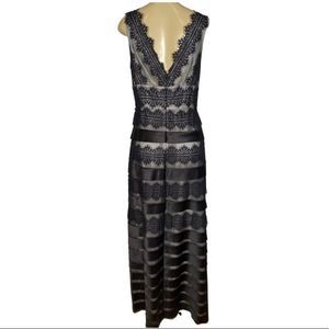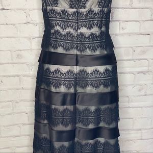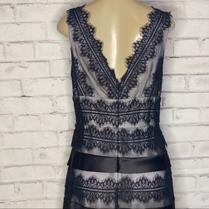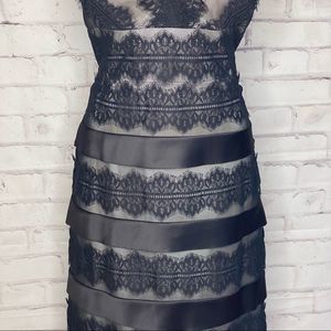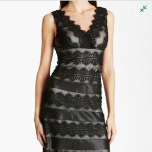 JS Collections Dress Lace Satin Sheath V Neck Black Nude Sleeveless Dress