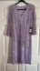 A light purple, knee-length dress with three-quarter sleeves, adorned with floral embroidery and embellishments. It is identified as a "JS Collections Soutache Sheath Dress". This dress features a V-neckline and a fitted silhouette, often described as "hugging all the right places". The dress is made of a sheer fabric with intricate soutache embroidery, giving it a delicate and elegant look.