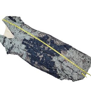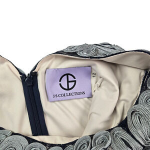 JS Collections Embroidered Ribbon Dress Size 12 Midi Blue Silver Shoet Sleeve