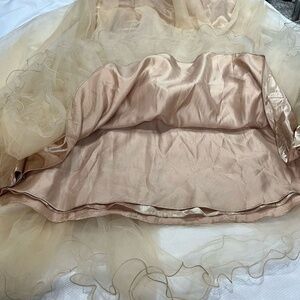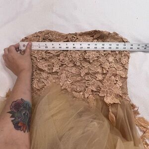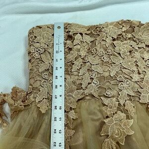 JS Collections Ethereal Champagne Floral Lace Tulle Strapless Dress. Size 8 with measurements in the pictures. Gently used condition with no rips or stains.