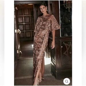 JS Collections Evalina Column Gown Boat Neck Mink Women's Size 4 NWT