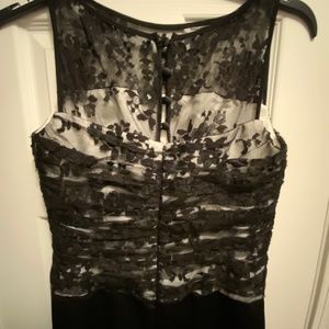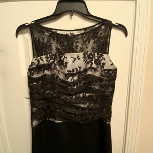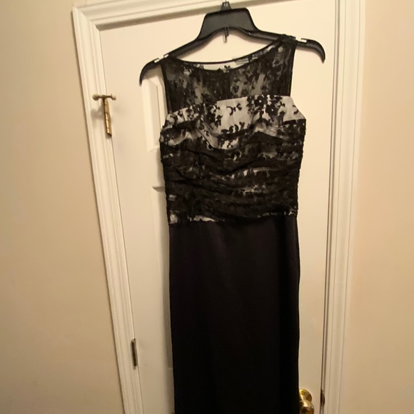 JS Collections Petite Gown Size 8 Black/White Lace Overlay Floral Lace Applique.
