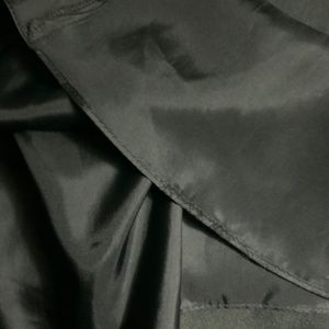 Elegant Black/White Lace Overlay ruching at waist illusion top with 3 button closure and hidden zipper closure back. Sleeveless satin bottom slight high low hem full lining. Do Not Steam The Lace.