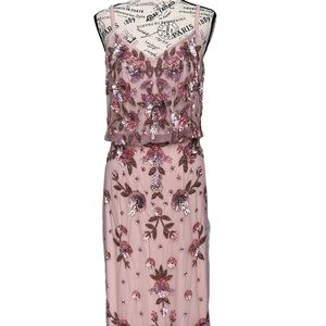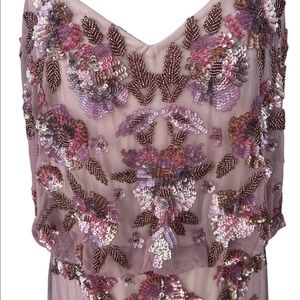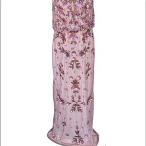 Beautiful JS Collections gown, blush color, tulle overlay with gorgeous sequins and beading, lined, straps are not adjustable, back zipper, new with tag.