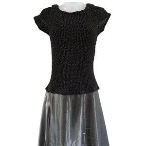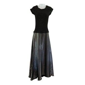 JS Collections Gray Silver Black Maxi Short Sleeve Full Skirt Prom Dress Size 10