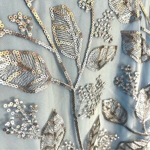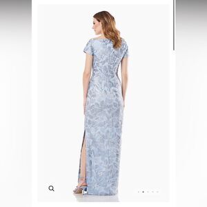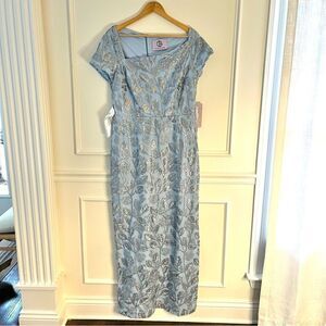 JS Collections Julia Cap Sleeve Column Gown Silver Sequins Light Blue, 12, NWT