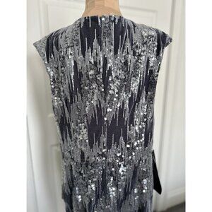 JS Collections June Sequin Velvet Faux Wrap Cocktail Dress in Gray/Silver Sz 16