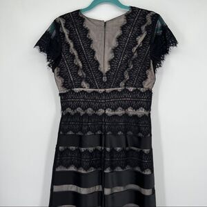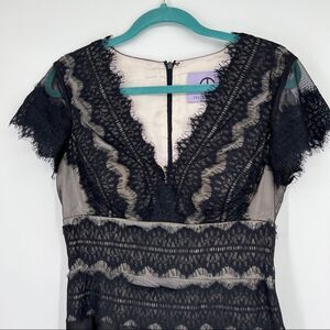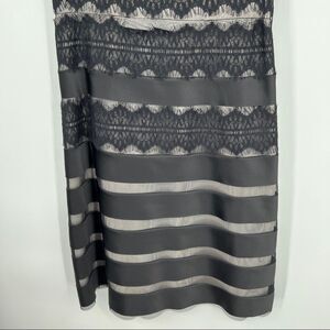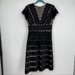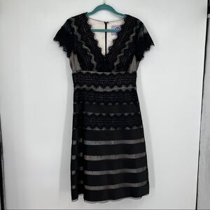 JS Collections Lace Satin Sheath V Neck Black Nude Sleeveless Mesh Mini Dress
