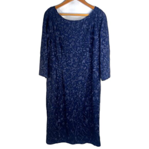 JS Collections Lace Scoop Neck Shift Dress Dressy Cocktail Evening Size 14 Blue