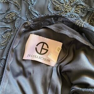 JS Collections size chart measurements for size 10: bust 38", waist 30.5", high hip 37.5", low hip 40.5"