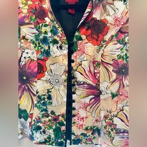 JS Collections Vintage-Inspired Satin Floral Jacket – Size 8