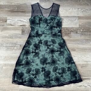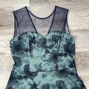 JS Collections Navy Blue Mesh Floral Midi Dress Illusion Cocktail Size 8