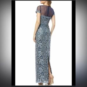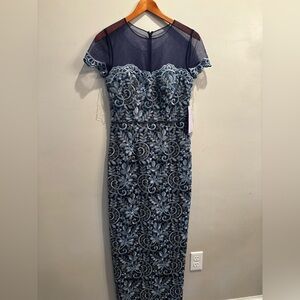 JS Collections Navy Embroidered Maxi Dress party cocktail elegant lace sheer