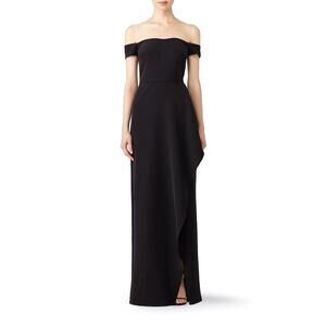 JS Collections Off Shoulder Split Gown Ruffle Maxi Evening Dress Black Size 6