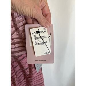 The JS Collections Ombre Soutache Short Sleeve Cocktail Dress in size 12 is a formal, midi-length dress designed for any season. Made from polyester material, this dress features a bateau neckline and a vibrant multi-pink color with a soutache pattern. The tea-length style and regular fit make it a perfect choice for special occasions, and it should be dry cleaned for maintenance. This elegant dress by JS Collections is a beautiful addition to any woman's wardrobe.