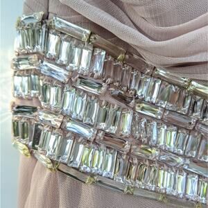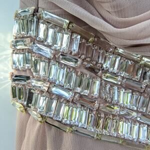 Features: with gathered fabric around the bosom elegantly framing the empire waist of this gown, you're sure to stun wherever the night takes you. Delicate beading ensures you glitter and shine as you sashay the evening away. Hidden zipper detail, maxi, formal, wedding, bridesmaid, guest, chiffon, meshing, fully lined.