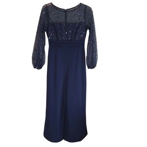 JS Collections Raelynn Embellished Blue Long Sleeve Wide Leg Jumpsuit Size 10