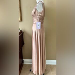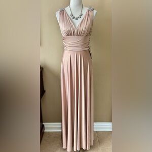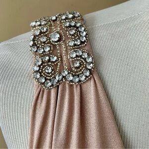 JS Collections Rhinestone Embellished Gown Maxi Dress Champagne Rose Gold 4 NWT