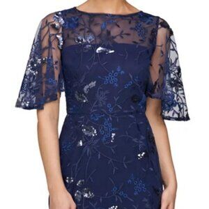 JS Collections Sapphire Navy Daphne Embroidered Sequin Column Gown