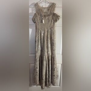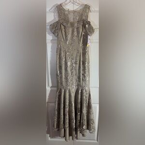 JS Collections Silver High Low Gown with Flutter Sleeves Size 4 NWT