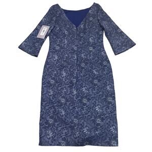 JS Collections Size 12 Metallic Jacquard Sheath Dress | Navy Floral Cocktail NWT
