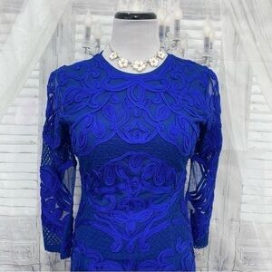 JS Collections Size 2 Sheath Royal Blue 3/4 Sleeve Round Neck Dress Formal NWOT