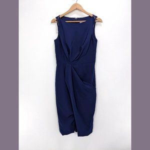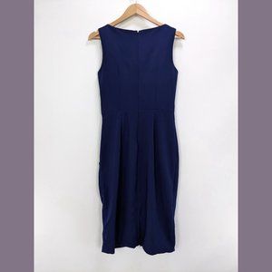 JS Collections Size 6 Boat Neck Sleeveless Faux Wrap Midi Sheath Dress in Navy
