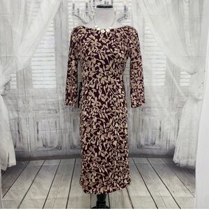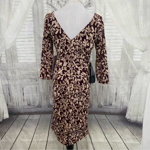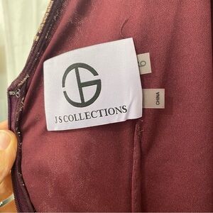 JS Collections Size 6 Maroon Purple Embroidered Fitted 3/4 Sleeve Sheath Dress