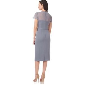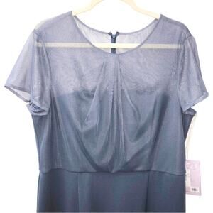 JS Collections Slate Blue Short Sleeve Illusion Cocktail Dress 16 NWT