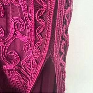 JS Collections Soutache Embroidered Midi Dress Fuchsia Burgundy sz 2 Cocktail Wedding Holiday Party