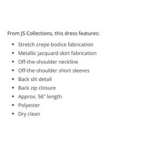 JS Collections Stretch Crepe Metallic Jacquard Off The Shoulder Gown