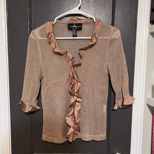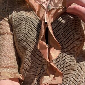 Perfectttt JS Collections top - shimmer, mesh, ruffles, buttons up 🧵 great condition. Would be sooo good as a festival/ summer piece!! 💎