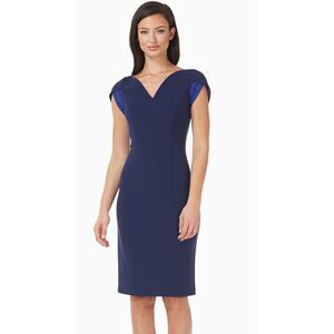 Nordstrom, JS Collection, designer, Stretch, cocktail, party, banquet, sexy, weekend, great butt dress, straight, soft, contemporary, modern, blue, two tone, gown, bodycon, bow cap sleeves, sheath dress, notched neck, v neck, wedding wear, work office wear, transitional piece
