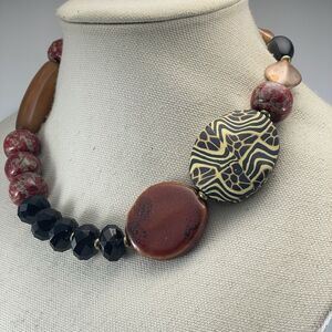 JS Collections Vintage Gold Tone Chunky Acrylic Beaded Statement Necklace Boho