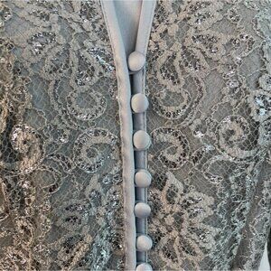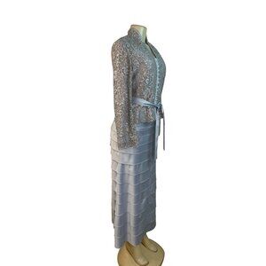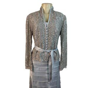 JS Collections Womens Silver Lace Jacket & Tiered Satin Skirt Formal Set Sz 2