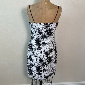 JS Collections Women's Size 10 Black & White Ruffle Dress Lined Spaghetti Straps