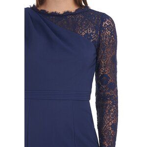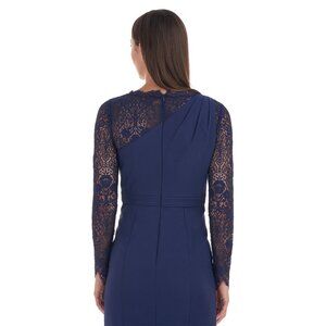 JS Collections Womens Size 12 Navy Maria Scallop Lace Cocktail Formal Maxi Dress