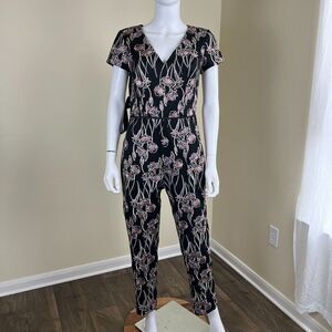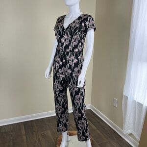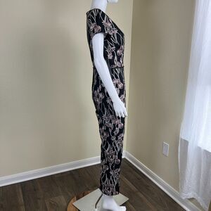 JS Collections Women's Size 6 Floral Embroidered Printed Crepe V-Neck Jumpsuit