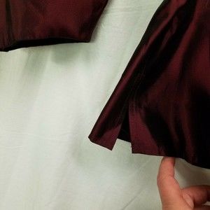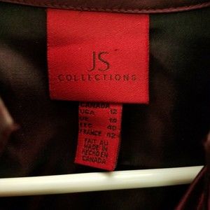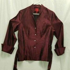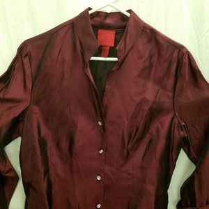 JS Collections shiny maroon satin blouse w Rhinestone Buttons women sz 12