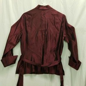 JS Collections shiny Maroon/Burgundy Blouse. Beautiful Rhinestone Buttons, Long Sleeves with cuffs & a Belt. Evening wear, party cocktail, formal. work. Looks so much better in person! If you don't love it, return it for a full refund!