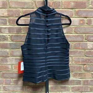 JS Collections Black Mock Neck Mesh Sleeveless Blouse Size 12 NEW