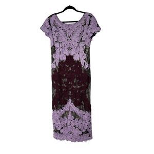 JS Collections Orchid Chianti Soutache Two Tone Embroidered Lace Dress 10 Women