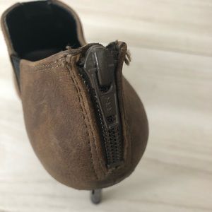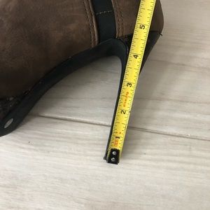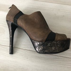 Jessica Simpson platform heels with nubuck leather and elastic construction. 5.5 inch heels with bronze embellished leather bottom.
