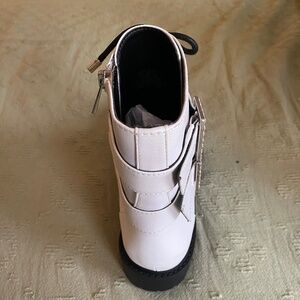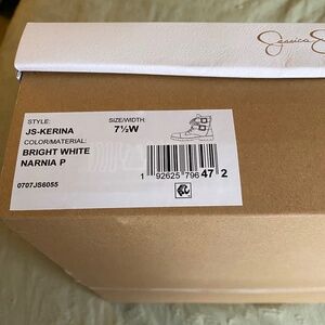 Jessica Simpson Kerina bright white boots. Silver hardware. Brand new, in box. Never worn. Size 7 1/2 W. Very cute.
