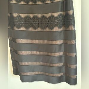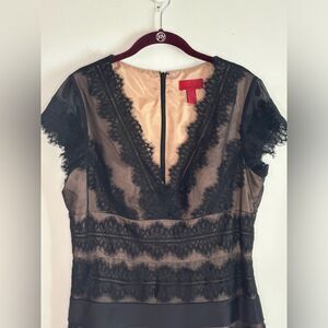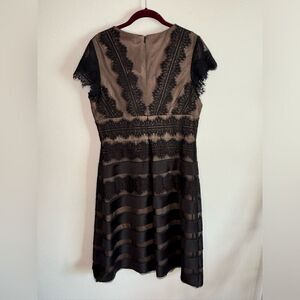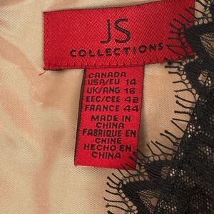 JS collections EUC beige/blackl lace overlay short sleeve midi dress Size 14